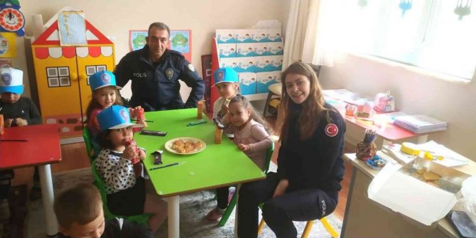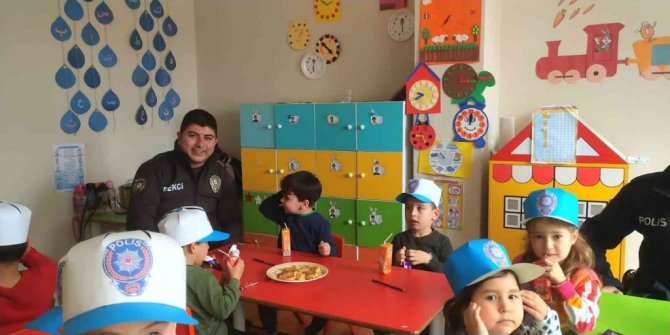 Türk polis teşkilatının 177'inci kuruluş yıldönümü çerçevesinde Çiftlik Anaokulu'nu ziyaret eden Köşk İlçe Emniyet Müdürlüğü ekipleri, öğrencileri ziyaret etti. Miniklere çeşitli hediyeler veren ekipler, aynı zamanda polisin önemine dair kısa bilgiler verdi.