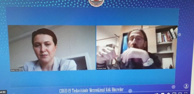 Düzenlenen webseminer kapsamında Kök Hücre Uygulama ve Araştırma Merkezi Müdürü Öğr. Gör. Dr. Melek Yüce moderatörlüğü üstlenirken konuşmacı olarak katılan Prof. Dr. Ercüment Oval ise Kovid - 19 patogenezi, uygulanan tedavi protokolleri ve mezenkimal kök hücrelerin tedavideki yeri hakkında katılımcıları bilgilendirdi.
