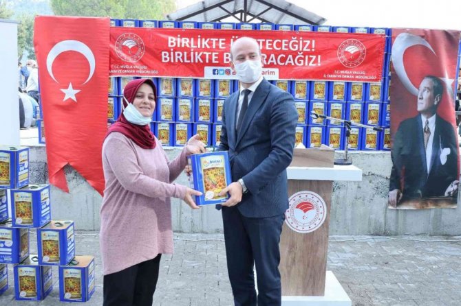 İl Müdürü Barış Saylak yaptığı konuşmada ilk olarak yangın şehitlerini rahmetle anarken, "Ağustos ayında çıkan orman yangını sonrası orman yangınlarında yaşanan verim kaybının arı kolonilerinde oluşturduğu zararın giderilmesi, arıların kış öncesi bakımlarının yapılarak bahara daha sağlıklı çıkmasının sağlanması ve yangından etkilenen bölgelerimizdeki arıcılarımızın kayıplarının telafisi amacıyla Bakanlığımız Hayvancılık Genel Müdürlüğünün desteğiyle hazırlanan "Hayvancılığı Geliştirme Projesi" kapsamında Marmaris, Köyceğiz ve Milas ilçelerimizde toplam 2 bin 97 arıcıya 487 bin kovan için 255 bin 480 kg arı yemi dağıtımı yapıyoruz. İlkini Marmaris'te başlattığımız dağıtımımız Köyceğiz'de 658 arıcıya 82 ton dağıtımla devam ediyor. Başka desteklerimizde devam ediyor edecek" dedi. Projelerden ve yangın sonrası yardımlardan söz etti.