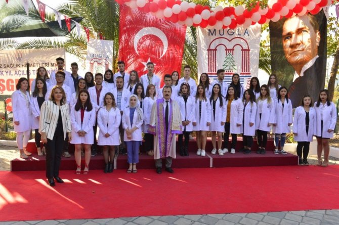 Açılış konuşmalarının ardından, Köyceğiz Sağlık Hizmetleri Meslek Yüksekokulu öğrencileri beyaz önlüklerini giydi.