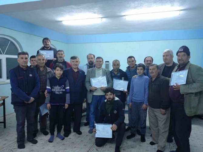 Konuşmaların akabinde Müftü Ahmet Karagöz, kursu veren İmam-Hatipler Murat Yaşar,Garip Hasan İlhan ile Din Hizmetleri Uzmanı Mustafa Özdil,misafir olarak bulunan Beyobası Merkez Camii İmam-Hatibi Sunay Keskin tarafından katılım belgeleri takdim edildi. İlçe Müftüsü Karagözün Diyanet İşleri Başkanlının yayınlarından "Peygamberimiz ve Vefa Toplumu" adlı kitap kursiyerlere hediye edildi.