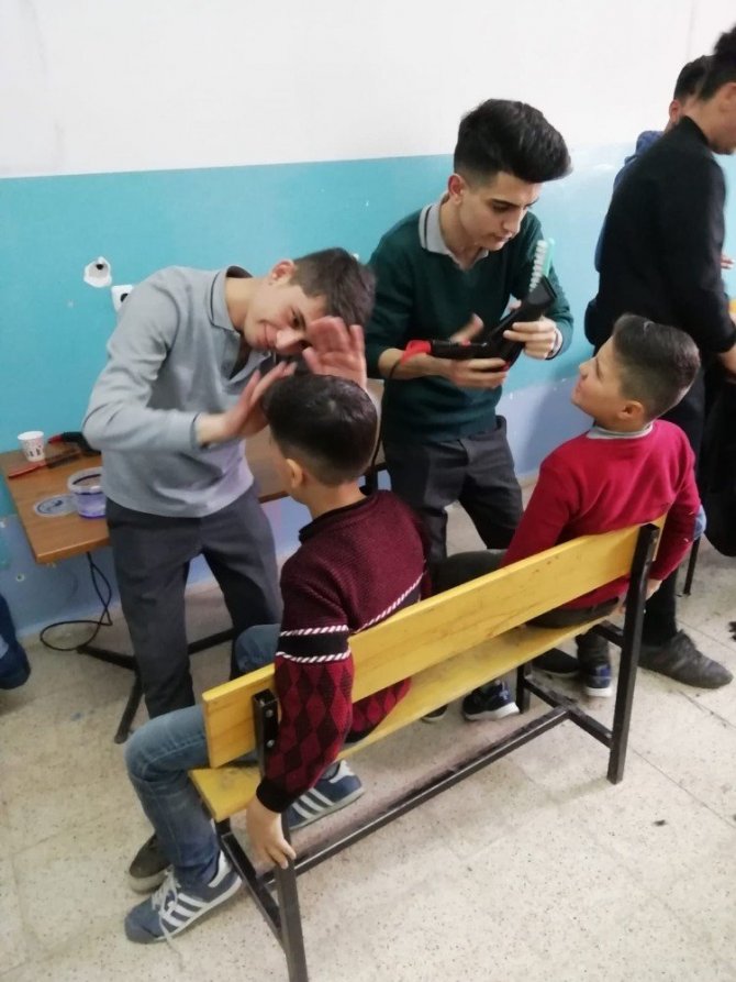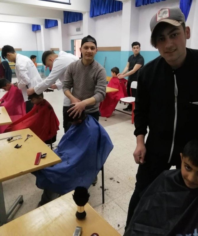 Kuaförlük öğrencilerinden kardeşlerine gönüllü tıraş