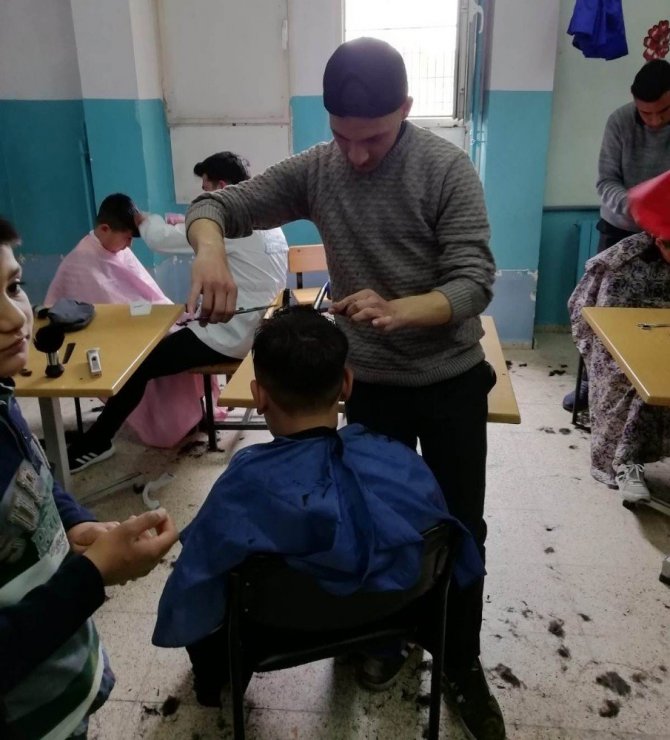 Yunusemre Mesleki Eğitim Merkezi Kuaförlük Bölümünde okuyan 12 öğrenci, Taytanlı İlhan İlkokulunda öğrenci kardeşlerine ücretsiz tıraş hizmeti sundu. Manisa’da yaklaşık 5 yıldır devam eden "Hem Meslek Hem Destek" projesi kapsamında yılda ortalama 500 öğrenciye saç bakımı yapan Yunusemre Mesleki Eğitim Merkezi öğrencilerinin bu kez durağı Manisa’nın Yunusemre ilçesindeki Taytanlı İlhan İlkokulu oldu. Merkezin son sınıf kuaförlük öğrencilerinden oluşturulan 12 kişilik ekip, çevre okullarda öncelikle ihtiyaç sahibi olmak üzere istekli öğrencilere saç bakımı ve kesimi hizmeti verdi. 2 saatte 80 öğrenciye saç bakımı yapıldı.