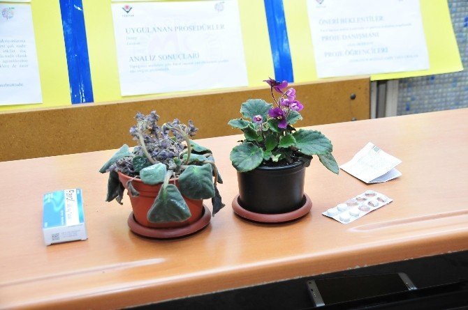 Mamak Ortaokulu TÜBİTAK bilim fuarında dikkat çeken projelerden biri de 8. sınıf öğrencisi Zehranur Bozdağ ve Emir Taha Erolan tarafından hazırlanan ve gereksiz ilaç kullanımının zararlarını gözlemledikleri proje oldu. İki ayrı menekşe çiçeğini alan öğrenciler, çiçeklerden birine normal su; diğerine ise içerisine her evde rahatlıkla bulunabilen ilaçlardan birini su ile karıştırarak verdiler. Proje sorumlusu Zehra Nur Bozdağ ve Emir Taha Erolan gözlemlerini ise şöyle aktardı: “İçerisine ilaçlı su katılarak sulanan çiçeğin ilk etapta daha sağlıklı göründüğü ancak ilerleyen günlerde ilaçla sulanan çiçeğin hızla kurumaya başladığını gözlemledik. Gereksiz yere kullanılan ilaçların bu zararlarını iki ay boyunca çiçekler üzerinde denedik Doktor tavsiyesi ve kontrolü olmadan ilaç kullanımının ne kadar sakıncalı olduğunu gördük. Çiçekler de bir canlı olduğu için gereksiz ilaç kullanımının zararını çiçekler üzerinde denedik. Burada zararlı olan ilaç değil, ilacın doktor tavsiyesi olmadan bilinçsizce kullanılmasıdır. Projemizin amacı da bunu ortaya koymak ve insanları uyarmaktı. ”