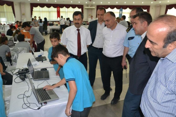 Beraberindekilerle yarışma stantlarının gezerek öğrencilerin yapmış olduğu projeleri inceleyen İlçe Milli Eğitim Müdürü Mehmet Işık, “Hem yarışma hem de bir etkinlik çerçevesinde sizlerle birlikte bulunmaktan mutluyuz, gururluyuz ve coşkuluyuz. Burada birinci olan okullarımız ilde yapılan yarışmaya ilçemizi temsilen katılacaklar. İlçemizi en iyi şekilde temsil edecek okullarımıza şimdiden başarılar diliyoruz. Bizler sizin emrinize amadeyiz. Elimizden geldiği kadar çocuklarımızın önünü açmamız gerekiyor. İyi insan yetiştirmek, çocukları destelemek biz eğitimcilerin, velilerin ve herkesin görevidir. Bu anlamda görevimizi yapmaya çalışıyoruz. İyi ki varsınız, iyi ki geldiniz. Tüm katılan öğrencilerimizi ve öğretmenlerimiz kutluyorum. Teşekkür ediyorum çocuklar” ifadelerini kullandı.