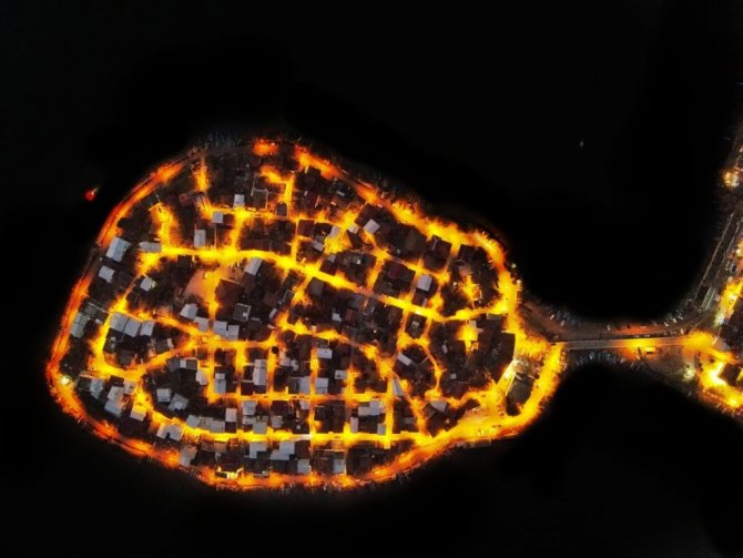Avrupa'nın en güzel kasabaları arasında gösterilen ve "Küçük Venedik" olarak nitelendirilen Bursa'nın Nilüfer ilçesindeki Gölyazı Mahallesi gün batımında drone ile görüntülendi.