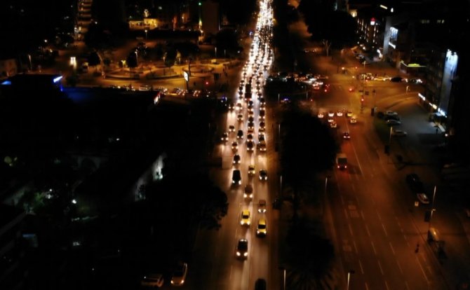 Fatih Vatan Caddesi'nden İsrail Konsolosluğu'na doğru harekete geçen konvoy havadan görüntülendi. Sivil Toplum Kuruluşlarının (STK) çağrılarına kulak veren vatandaşlar, binlerce araçtan oluşan bir konvoy düzenledi. "Kudüs'e umut ol" sloganıyla yapılan çağrıda, Fatih Vatan Caddesi'ne toplanan binlerce araç İsrail Konsolosluğu'na doğru harekete geçti. Filistin ve Türk bayraklarının da olduğu konvoya çevredeki insanlar da destek verdi. Bazı insanlar meşale yakarak sloganlar atarken, kimileri ise bayraklarını alarak konsolosluğun yolunu tuttu. Kilometrelerce uzunluktaki araç konvoyu ise drone ile havadan görüntülendi.