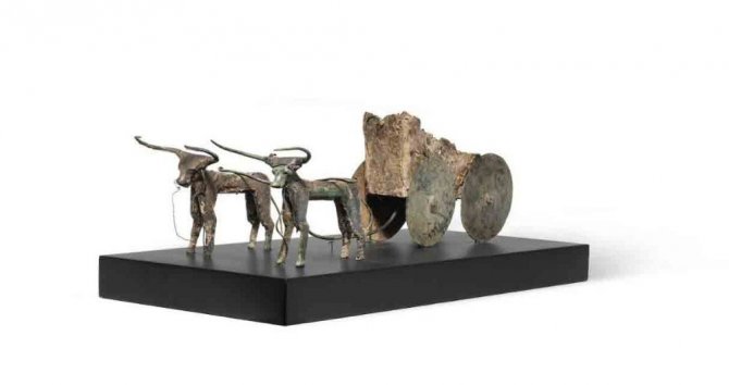 Yine İngiltere’de bulunan Bonham’s Müzayede Evi’nde ise Anadolu kökenli olan ve Milattan Önce (M.Ö.) 2-3 bine tarihlendirilen, iki adet boğa tarafından çekilen bir araba modelinin satışa çıkarıldığı tespit edildi.