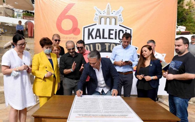 Başkan Uysal, Kaleiçi Old Town Festivali'nde ilk kez 2019'da Kaleiçi gibi yaşayan antik kentlere sahip şehirlerinin ortak deklarasyonu imza altına aldığını hatırlatırken "Duygu ve düşüncelerimizi dünyadaki bütün kurum ve kişiler bilsin istiyorum" diye konuştu. Başkan Uysal'ın konuşmasının ardından "Bu yıl da ortak mektubumuzu yazalım" diyerek "6. Kaleiçi Old Town Festivali İnsan Hakları Çerçevesinde Kültürel Mirasın Korunması Deklarasyonu" imzaya açtı. Deklarasyonun İngilizce ve Rusça okunmasının ardından şehirler metni imzaladı.