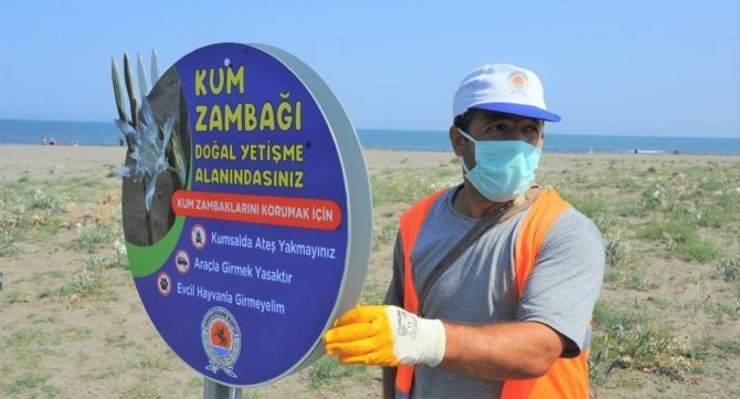 Samsun Büyükşehir Belediyesi koruma altında olan kum zambaklarına zarar verilmemesi için denetimlerine devam ederken, sahil kesimine uyarıcı levhalar yerleştirildi. Çevre Koruma ve Kontrol Daire Başkanlığı ekipleri, çevreye ve zambaklara zarar veren atıkları da periyodik olarak temizlemeye devam ediyor.