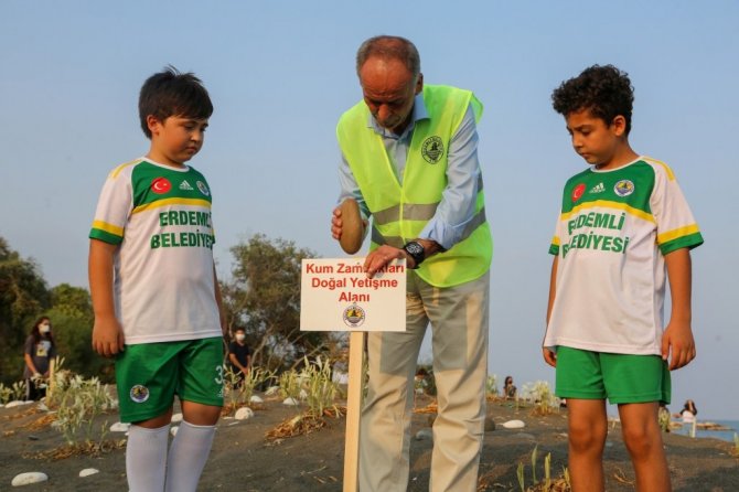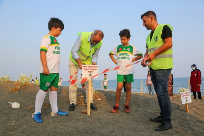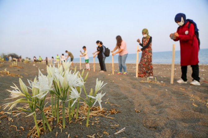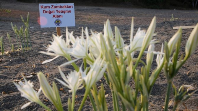 Leyla Demir de, "Burada kum zambaklarını koruma altına aldık. Çünkü kum zambakları nadir yetişen bir bitki, denizi ve kumları temiz olduğu için yetişiyor. O yüzden bizde bunları gelecek nesillere aktarmak için böyle bir koruma projesi yaptık" diye konuştu.