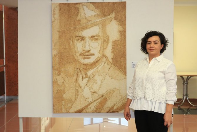 Kumaşları yakarak yaptığı portreleri beğeniye sundu