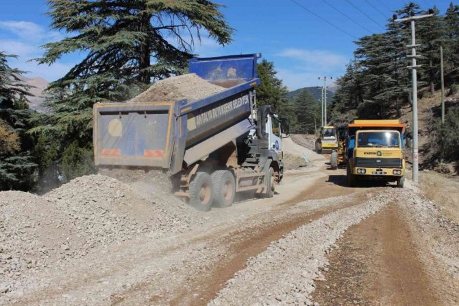 Antalya Büyükşehir Belediyesi, Kumluca ilçesinde Kuzca-Büyükalan mahalleleri arasındaki 4 kilometrelik grup yolunu asfalta hazırlıyor.