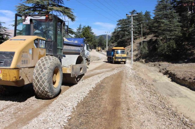 Kumluca Kuzca yolunda asfalt çalışması