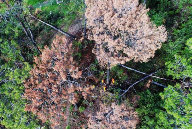 Kuraklığın vurduğu kızılçamlar kesiliyor