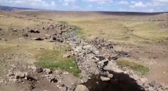 Erzurum'da havaların aşırı ısınması ve yağış olmamasından dolayı Tekman ilçesinde bulunan dere yatakları kurudu.