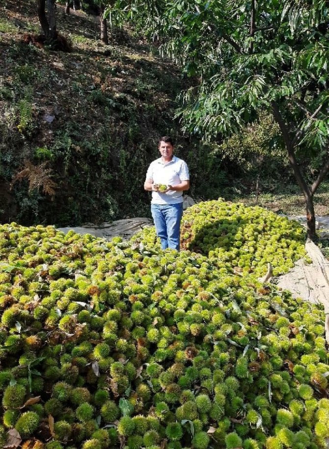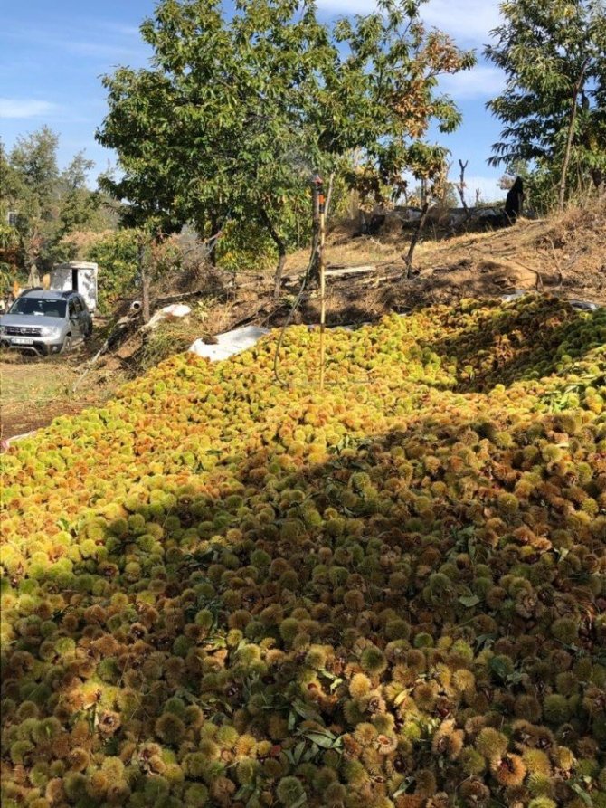 Türkiye’de kestane ağacı varlığı ve kestane üretiminden Aydın’ın lider durumda olduğunu Aydın’da da en fazla kestane üretiminin Köşk, Sultanhisar ve Nazilli ile Ödemiş ilçelerinin zirvesindeki dağlarda gerçekleştiğini belirten Köşk Ziraat Odası Başkanı Veli Tuna, hasat sezonunun sona erdiğini belirtti. Bu yıl kuraklık nedeniyle rekoltede önemli düşüş olduğunu ve irilik olarak da kestanelerin geçen yıllara göre kalibre düşüklüğü yaşadığını belirten Tuna, “Diğer ürünlere göre hasadı daha çabuk ve kısa bir dönemde gerçekleşen kestanede bu yıl yaşanan kuraklık nedeniyle rekoltenin eksik olduğunu görüyoruz. Aydın ili olarak Türkiye’nin en fazla kestane ağacı varlığına sahibiz. Ancak daha önce dal kanseri nedeniyle yaşadığımız sıkıntılara ilave olarak bu yıl kuraklık nedeniyle yeni bir sıkıntı ile karşı karşıya kaldık. Bu sene yağmur yağmadığı için kestane küçük kaldı iri tane yapamadı. Bu nedenle kalite zayıf. Hasadı oldukça tehlikeli olmasından dolayı işçilik maliyeti oldukça pahalı, çırpma yevmiyesi gündeliği 300-400 TL civarında. Maliyetin yükselmesine etken olan birçok sebep var. Şu anda akıntı kestane dediğimiz kendiliğinden dökülen kestane satılmaya başladı. Fiyatı 20 TL civarında. Üreticiler olarak beklentimiz bu fiyatların korunması” diyerek kestane üreticisinin iyi başlayan fiyatların korunmasını talep ettiğini söyledi.