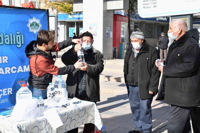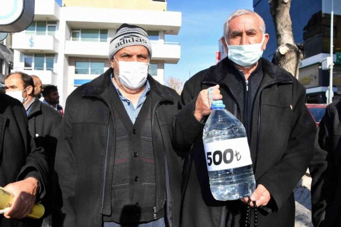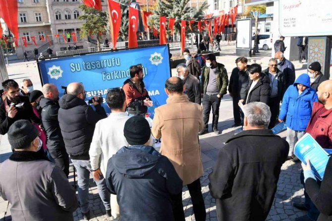 "Su 500 lira" diyerek bağıran belediye personeli gün boyunca vatandaşların dikkatini çekerek bilgilendirme yaptı.