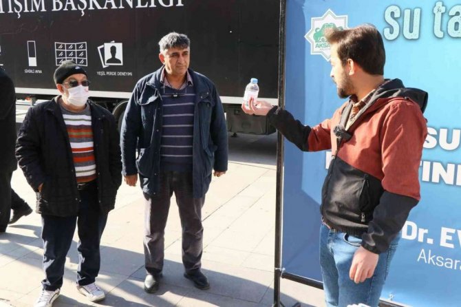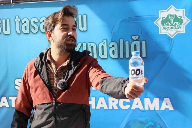 Aksaray Belediyesi tarafından vatandaşlara su tasarrufu içeren broşürlerde dağıtıldı. Su tezgahına gelerek suyun kıymetine dikkat çekmek isteyen Osman Çekiç (35) ise, 100 TL verip 0,33 ml su satın aldı. Hayatında ilk defa bu kadar pahalı bir su aldığını belirterek, "Bence suyun kıymetini bilmek gerekir. Suyu lütfen tasarruflu kullanalım. Su her şey, hayat demektir" dedi.