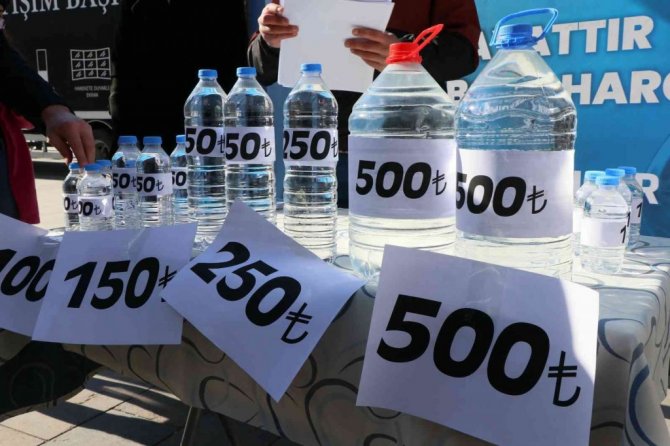 Son yıllarda yaşanan kuraklıkla birlikte barajlardaki su seviyesinin düşmesi sonucu Aksaray Belediyesi farkındalık oluşturmak için meydanda açtığı tezgahta 5 litrelik suyu 500 TL'den satışa sundu. Su şişelerinin üzerindeki fiyatlara gören vatandaşlar şaşkınlıkla ne olduğunu anlamaya çalışırken, kimi vatandaşlarda farkındalığa destek olmak için 0,33 ml suyu 100 TL'ye satın aldı.