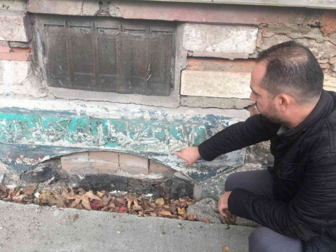 Eyüpsultan'da bulunan Ya Vedüd Camii'nin giriş kapısında yazılı olan Kuran-ı Kerim ayeti kaldırımın yükseltilmesinden dolayı ayak hizasına kadar indi.