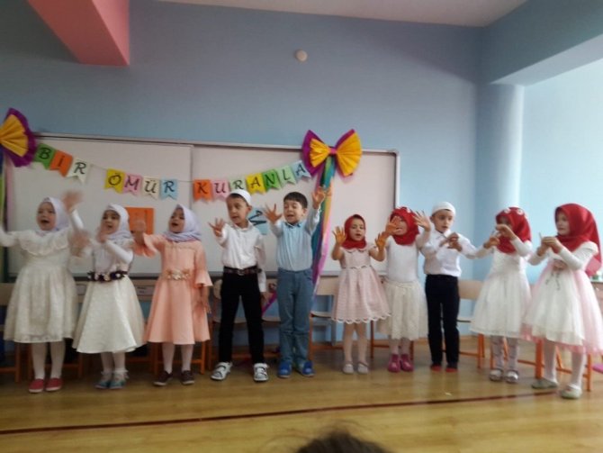 Program salavatlar eşliğinde başlayarak çocukların öğrendiği ilahiler ile devam etti. Kur’an a geçen çocuklara ’Bir Ömür Kur’an Yolunda’ temennisi ile taç ve Kur’an-ı Kerim hediye edildi. Okul Müdürü Hüseyin Coşar ve İlçe Müftüsü Murat Hasankahyaoğlu’nun iyi dilekleri ile çocuklar pastalarını kestiler.