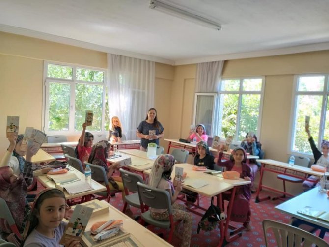 Sarıgöl İlçe Sağlık Müdürlüğü ekipleri bilgilendirmelerin ardından Kur’an kursu öğrencilerine ağız bakım seti hediye etti.