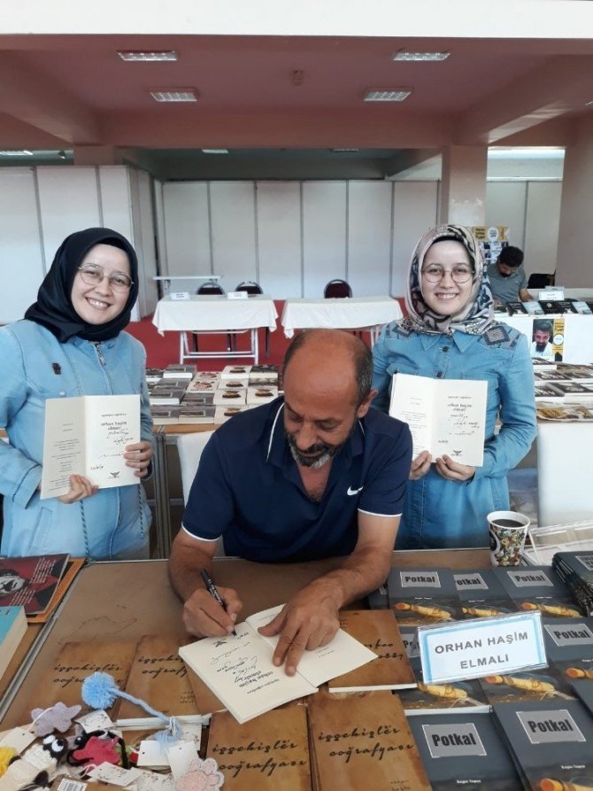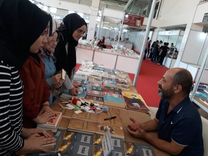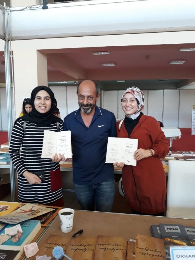 Manisa 3. Kitap Fuarında okuyucularına kitaplarını imzalayan Manisalı Şair Orhan Haşim Elmalı, öğrencilerin şiirle ilgili sorularını cevaplandırdı.