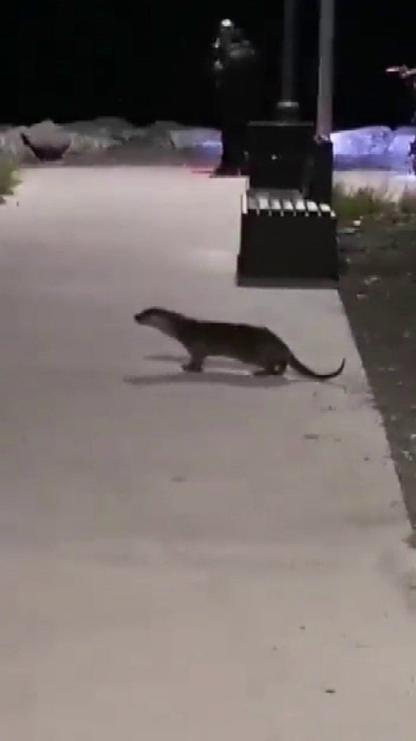 Kadıköy Kurbağalıdere'de kayalıkların arasından çıkan su samuru yolun karşısına geçti. Yaşanan o anlar cep telefonu kamerasına yansıdı.