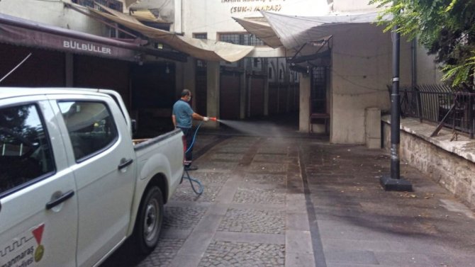 Kentte yoğunluğun oluşabileceği tüm üstgeçitler, pazar yerleri, ATM'ler, çarşılar, otobüs durakları, banklar, parklar ve diğer sosyal alanlar hummalı çalışmalarla dezenfekte ediliyor.