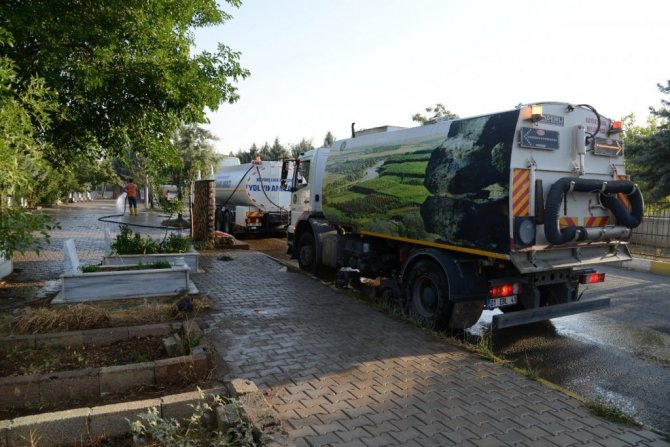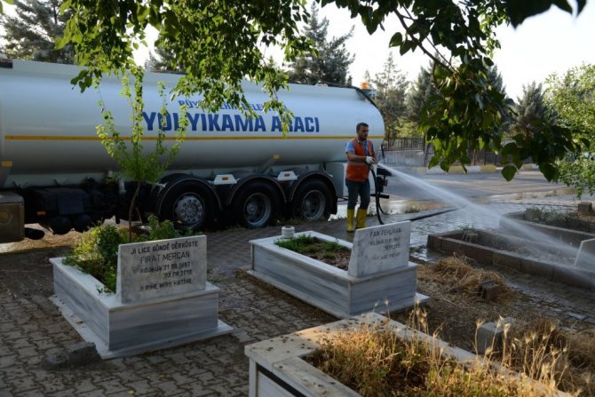 Diyarbakır Büyükşehir Belediyesi, Kurban Bayramı öncesi kentteki mezarlıklarda temizlik çalışması yürüttü.