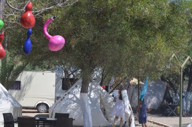 Muğla'nın Marmaris ilçesinde 9 günlük Kurban Bayramı tatilini fırsat bilen tatilciler kamp alanlarını doldurdu.