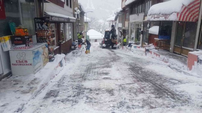 Kastamonu'nun Küre ilçesinde etkili olan kar yağışına karşı, ekipler yol açma çalışmalarına başladı.