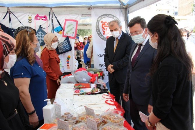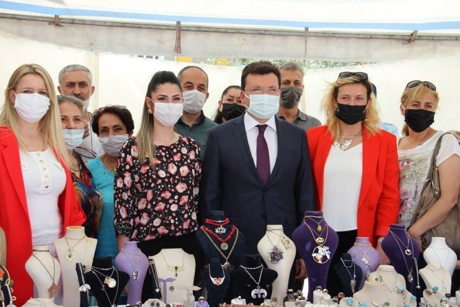Konuşmaların ardından serginin açılış kurdelesi kesen protokol üyeleri stantları tek tek gezerek kursiyerlerden yaptıkları çalışmalar hakkında bilgi aldı.