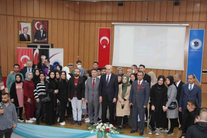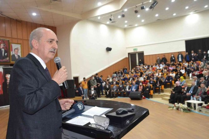 Ülkeyi yarına taşımaktan bahsettiklerini belirten Kurtulmuş, "Geleceği olmayan bir toplumun zaten bu gününün de abad olması mümkün değildir. Hep söylediğimiz bir şey var. Biz, kökü mazide olan atiyiz. Yani geçmişe katılıp kalmayan ama köklerini geçmişinden alan ve o kökler üzerinde ayağa kalkıp yükselebilen ve geleceğe doğru umutla yol alan bir milletiz. Böyle olmak mecburiyetindeyiz. Ne geçmişi kaldırıp atabiliriz ve ne de geçmiş yokmuş gibi geleceğe bakabiliriz. Bu laf güzel bir formülasyondur. Kökü mazide olan ati olmaktır. Kökü olmayan köksüz olan milletlerin toplumların ise ayakta kalması mümkün değildir ya da başkalarını taklit ederek başkalarına benzemeye çalışarak bu milletin ayakta durması asla mümkün değildir. Çünkü yine bize tabiatın öğrettiği bir şey var. "Her ağaç kendi gövdesi üstünde yükselir." Başka bir ağacın gövdesi üstünde yükselen hiçbir ağaç yoktur. Dolayısıyla bu millet kendi kökleri üstünde yükselecek ve bu yükselişi sağlayacak olan sizlersiniz, sizden sonraki nesiller olacaktır. Bu çerçevede toplumların ileriye doğru gitmesini gelişmesini, güçlenmesini, büyümesini sağlayan çok sayıda mesele vardır. Ama benim burada sizlerle birkaç başlıkta özetlemeye çalışacağım. Toplumların gelişmesini sağlayacak toplumsal gelişimin değişimin ilkeleri üzerinde durmak istiyorum. Değerli kardeşlerim insanların nasıl kaderi varsa toplumların da kaderi vardır. İnsanlar istedikleri kadar çalışsınlar çabalasınlar istedikleri kadar yani kendileri için önemli gördükleri şeyleri yaparlarsa yapsınlar kendi kaderlerini tayin etme imkan ve ihtimalleri yoktur. Beş dakika sonramızın ne olacağını bilmiyoruz" dedi.
