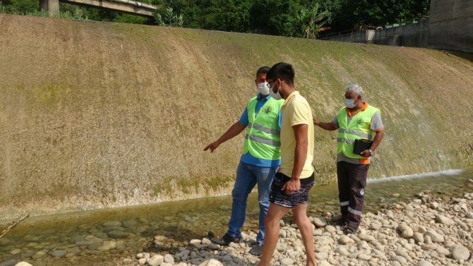 Belediye ekiplerince birikintilere sıkışan balıkların olduğu bölgeler gözetim altına alındı, balıklar için su takviyesi yapıldı.