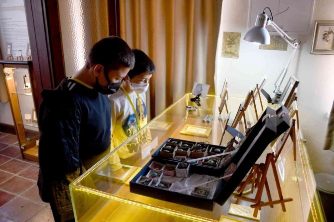 Mineral ve Fosil Müzesi ile Necati Korkmaz Mikro Minyatür Merkezi'ni ziyaret eden öğrenciler, SEYAKMER Dijital Çocuk Kütüphanesi'nde "Yazarak Öğreniyorum" isimli atölye çalışmasına katıldı.