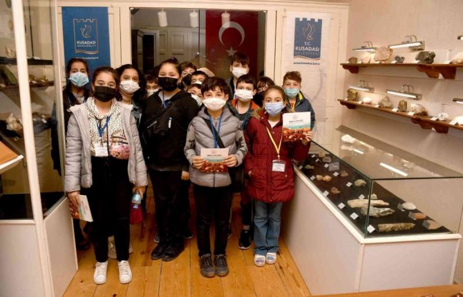 Kuşadası Belediyesi'nin kentte eğitim gören öğrencilerin sosyal ve kişisel gelişimlerine katkıda bulunmak ve çocukların keyifli vakit geçirerek öğrenmelerini sağlamak amacıyla yaşama geçirdiği "Yaparak ve Yaşayarak Öğreniyorum" etkinliğinin son katılımcıları Soğucak Ortaokulu öğrencileri oldu. Sosyal Bilgiler Öğretmeni Yasemin Özdemir ile Türkçe Öğretmeni Öner Ocak'ın eşliğinde 5. sınıf öğrencilerinin katıldığı etkinlik, Mineral ve Fosil Müzesi ziyareti ile başladı. Dünyanın farklı bölgelerinden çeşitli zaman dilimlerine ait fosil ve mineral örneklerinin sergilendiği müzeyi büyük bir ilgiyle gezen öğrenciler, derste işledikleri bor mineralini de yakından görme ve inceleme fırsatı buldu.
