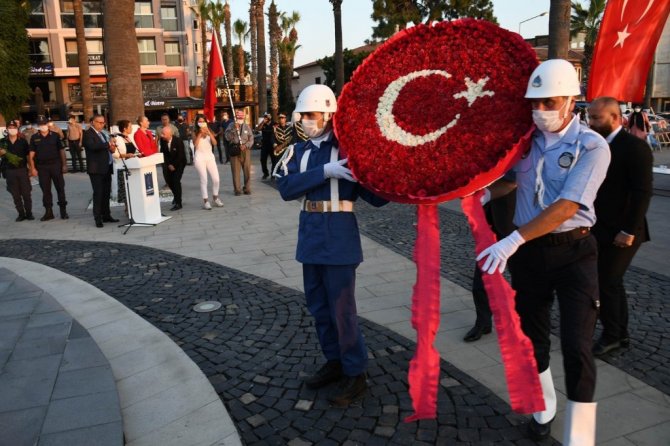 Anma töreninde konuşan Kuşadası Kaymakamı Sadettin Yücel, "Bundan 5 sene önce demokrasimize karşı bir darbe girişiminde bulunuldu. Birliğimize ve beraberliğimize darbe yapmak istediler. Türk milleti olarak buna asla izin vermedik ve vermeyeceğiz" dedi.