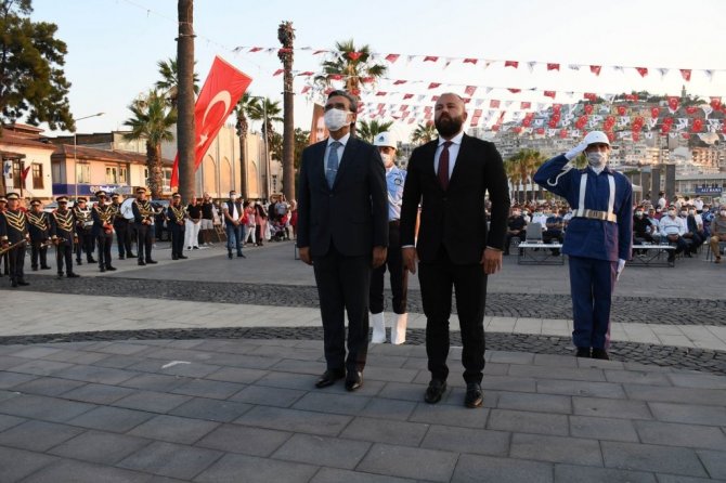 Anma programı, akşam saatlerinde Atatürk Meydanı'nda düzenlenen resmi törenle devam etti. Törene, Kuşadası Kaymakamı Sadettin Yücel, Kuşadası Belediye Başkan Vekili Ali Kotan, Belediye Başkan Yardımcısı Oğuzhan Turan kentte görev yapan mülki ve idari amirler, siyasi partilerin temsilcileri ile çok sayıda vatandaş katıldı. Etkinlik, Kuşadası Kaymakamı Sadettin Yücel ile Kuşadası Belediye Başkan Vekili Ali Kotan'ın Atatürk Anıtı'na çelenk sunmasıyla başladı. Ardından protokol üyeleri ve vatandaşlar Atatürk Anıtı önüne kurulan temsili şehitliğe karanfil bıraktı. Etkinlik şehitlerin ruhu için Kuran-i Kerim tilaveti okunması ve ney dinletisi ile devam etti. Etkinlikte ayrıca 15 Temmuz şehitleri için şiirler okundu.