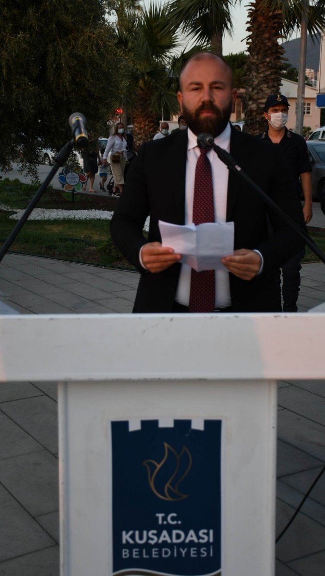 Kuşadası Belediye Başkan Vekili Ali Kotan ise " Ülkemiz bundan tam beş yıl önce hain bir darbe girişimiyle karşı karşıya kaldı. Milli irade ve egemenliği hiçe sayarak, demokratik kuruluşları vesayet altına almayı hedeflediler. Her kim tarafından yapılırsa yapılsın darbeler, demokrasiyi kesintiye uğratan, izleri siyasal toplumsal ve ekonomik yaşantıda uzun yıllar boyunca silinmeyen müdahalelerdir. 15 Temmuz darbe girişimine karşı canlarını veren şehitlerimize Allah'tan rahmet diliyorum" diye konuştu.