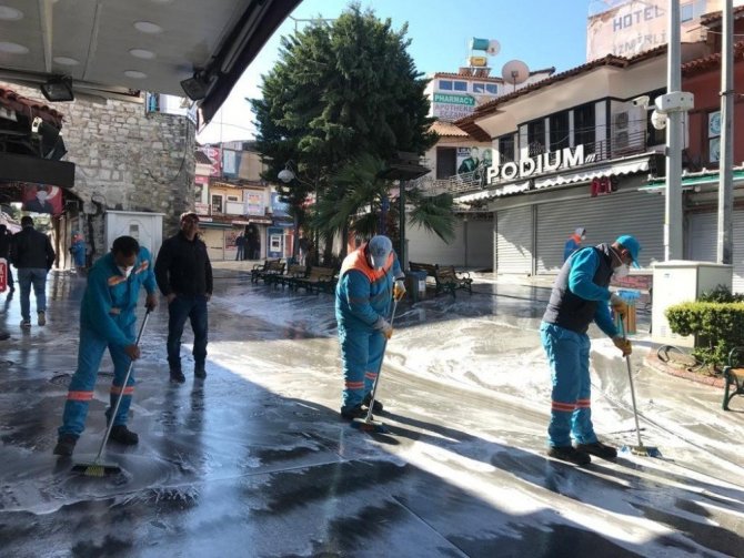 Türkiye’nin en önemli turizm merkezlerinden biri olan Kuşadası’nda Belediye Başkanı Ömer Günel’in talimatı ile kurulan özel ilaçlama ekip toplu taşıma araçları, cami, okullar, kamu binaları ve dolmuş durakları ile halkın yoğun olarak kullandığı alt geçitlerde dezenfekte çalışmasına başladı. Yerli ve yabancı turistlerin sıkça uğradığı çarşı ve sokaklar köpüklü suyla temizlendi. Belediye Başkanı Ömer Günel, Korona virüsün yayılmasına karşı kent genelinde çalışmaların süreceğini belirtti.