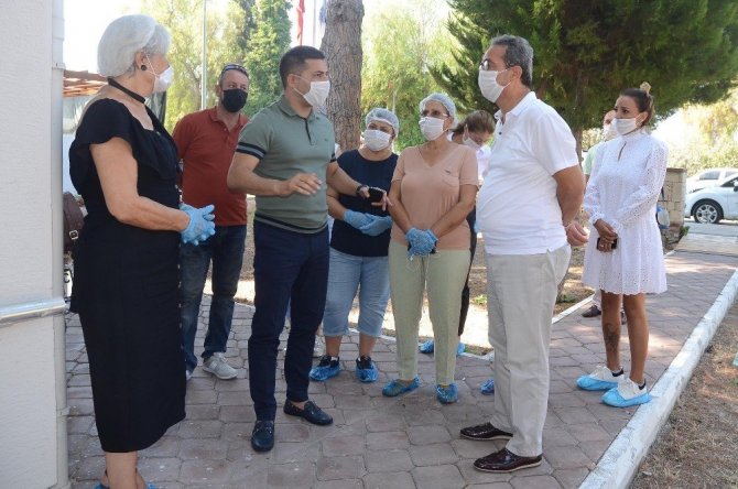 Kuşadası Belediye Başkanı Ömer Günel, Cumhuriyet Halk Partisi (CHP) Aydın Milletvekilleri Bülent Tezcan ve Süleyman Bülbül ile birlikte S.S Ada Kadın Üretim ve İşletme Kooperatifi çatısı altında faaliyet gösteren Emek Atölyesi’ni ziyaret etti. Kooperatif Başkanı Ayşegül Dağlı, Başkan Ömer Günel ve milletvekillerine 30 kadının gönüllü olarak maske üretiminde çalıştığı atölyenin faaliyetlerinden bahsetti.