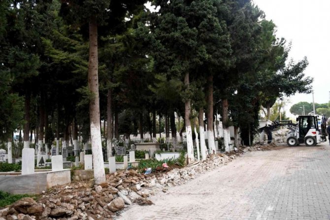 Kuşadası Belediyesi tarafından Güzelçamlı Mahallesi'ndeki mezarlıkta bakım, onarım ve yenileme çalışmalarına başlandı.