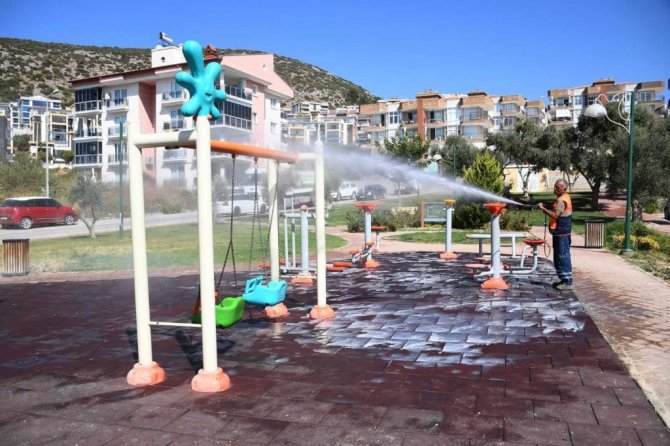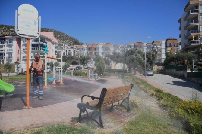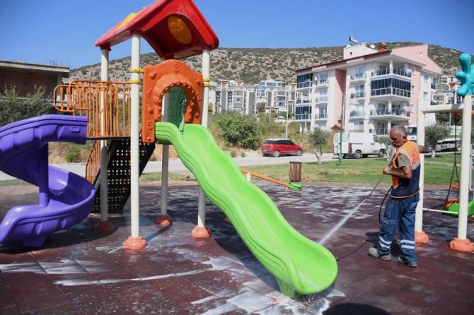Kuşadası Belediyesi parklarda temizlik çalışması gerçekleştirdi