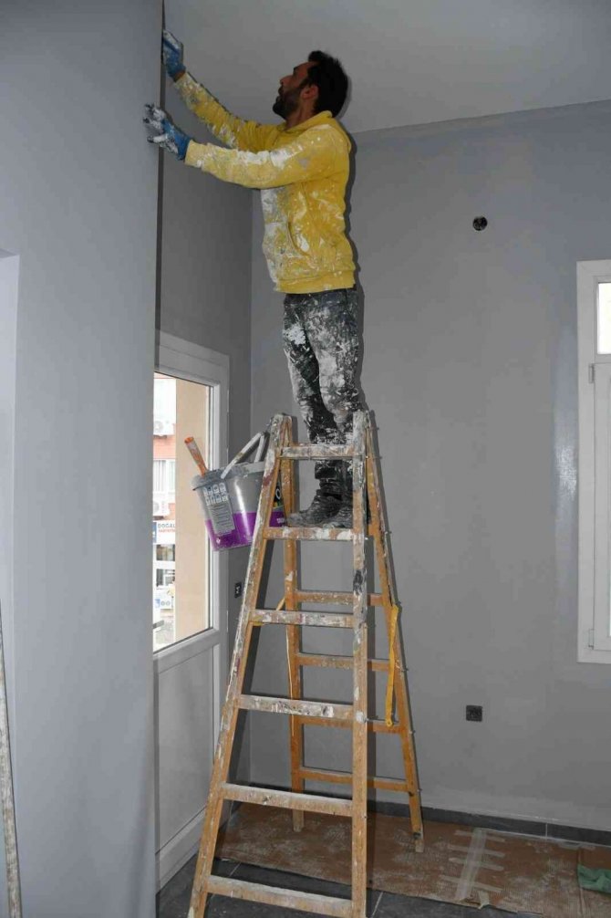 Kuşadası Belediyesi'nin İkiçeşmelik Mahallesi'nde hayata geçirdiği Taziye Evi ve Park Alanı'nın yapım çalışmaları devam ediyor. Fen İşleri Müdürlüğü ekipleri tarafından dış cephe inşaatı tamamlanan 3 katlı sosyal tesisin iç dekorasyonu sürüyor.