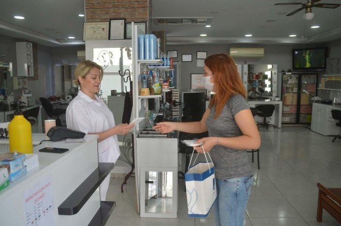 Kuşadası Belediyesi koronavirüs tedbirleri kapsamındaki yasağın sona ermesinin ardından 11 Mayıs tarihinde kapılarını müşterilerine açan berber ve kuaförler ile şehir içi yolcu taşımacılığı yapan dolmuş şoförlerine ücretsiz maske dağıtmaya devam ediyor. Çalışmalara bizzat katılan Belediye Başkan Yardımcısı Oğuzhan Turan, 2 ay içerisinde 3 binin üzerinde esnafa yaklaşık 85 bin maske dağıtıklarını belirtti.