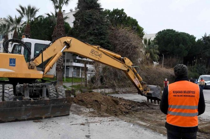 Kuşadası Belediyesi, yol yapım çalışmalarına ara vermiyor