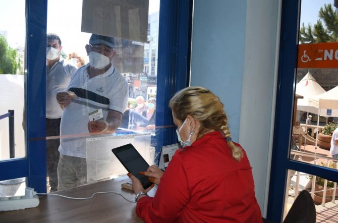 2021 yılı Emlak ve Çevre Temizlik Vergilerinin birinci taksitini ödemek amacıyla ödeme noktaları önünde yoğunluk oluşturan vatandaşların salgından korunmaları için de gerekli bütün önlemler alınıyor. Vergilerini yatırmak isteyen vatandaşlar öncelikle kapı önlerine yerleştirilen ünitelerde ellerini dezenfekte ediyor. Ardından sosyal mesafe kuralına uygun olarak sıraya giren vatandaşlar, HES kodları sorulduktan sonra içeriye alınarak veznelere yönlendiriliyor. Ayrıca HES kodu olmayan Kuşadalılara Güvercin Masa ekipleri tarafından HES kodu temin ediliyor. Bu sayede virüsün bulaş riski en düşük seviyeye indirilmiş oluyor.