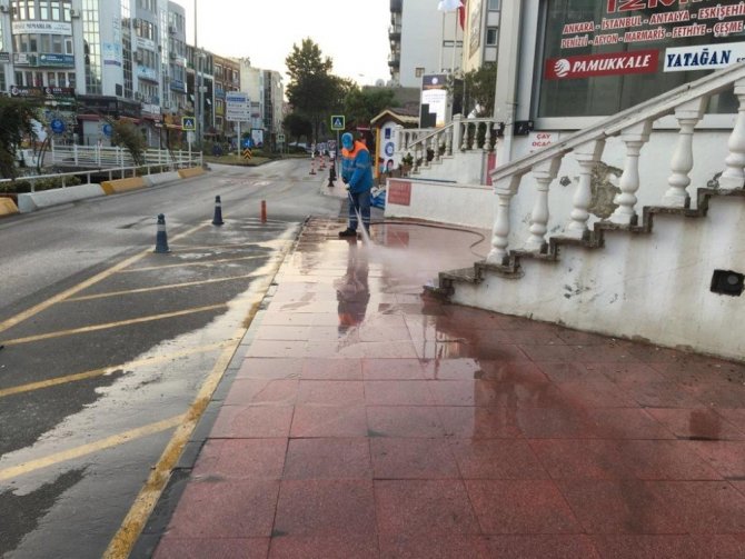 Türkiye’de korona virüs vakasının ilk kez görüldüğü 11 Mart tarihinden itibaren halk sağlığını korumak için bütün tedbirleri alan Kuşadası Belediyesi, ilçe genelindeki dezenfekte çalışmalarını aralıksız sürdürüyor. Temizlik İşleri Müdürlüğü’ne bağlı 30 kişilik özel ekip son olarak İnönü Caddesi ile İkiçeşmelik ve Camikebir Mahallelerinde detaylı temizlik faaliyeti yürüttü. Yol ve kaldırımlar, 80 derecelik köpüklü su ile yıkanıp, fırçalandı. Ayrıca vatandaşların temas etme ihtimali bulunan yüzeyler özel solüsyonlarla hijyenik hale getirildi. Program dahilinde diğer cadde ve sokakların düzenli olarak temizlenmeye devam edeceği belirtildi.